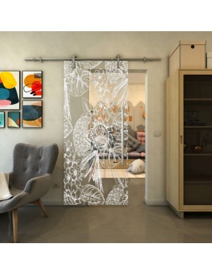 Glasschiebetür PIPE-LINE - Fineprint Modell 083 Weiss auf Klarglas