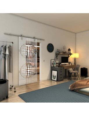 Glasschiebetür PIPE-LINE - Fineprint Modell 101 Weiss auf Klarglas