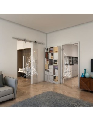 Glasschiebetür PIPE-LINE - Fineprint Modell 119 Weiss auf Klarglas