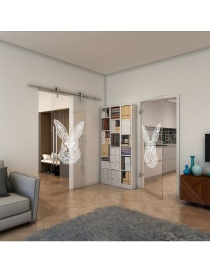 Glasschiebetür PIPE-LINE - Fineprint Modell 121 Weiss auf Klarglas
