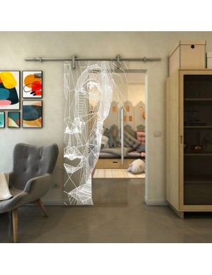 Glasschiebetür PIPE-LINE - Fineprint Modell 123 Weiss auf Klarglas