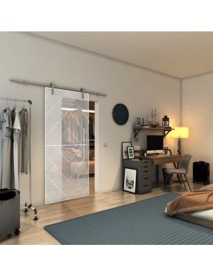 Glasschiebetür PIPE-LINE - Fineprint Modell 194 Weiss auf Klarglas