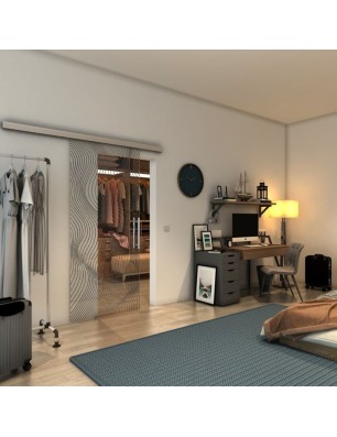Glasschiebetür SLIM-LINE - Fineprint Modell 066 Schwarz auf Klarglas
