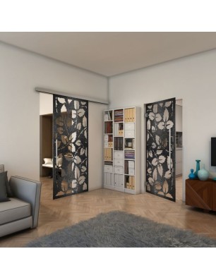 Glasschiebetür SLIM-LINE - Fineprint Modell 175 Schwarz auf Klarglas