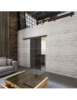 Im Lieferumfang enthalten: Glasschiebetür im Loft-Design, Black-Line Beschlagsystem, Griff nach Ihrer Wahl