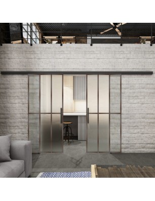 Im Lieferumfang enthalten: Glasschiebetür im Loft-Design, Black-Line Beschlagsystem, Griff nach Ihrer Wahl