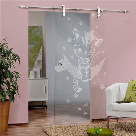 Glasschiebetüren mit Lasergravur auf Klarglas – PIPE-Line (Kinder-Motiv)