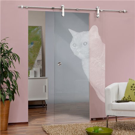 Glasschiebetüren mit Lasergravur auf Klarglas – PIPE-Line (Tierwelt-Motiv)