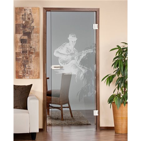 Ganzglastür Gitarist Gelasert Auf Klarglas