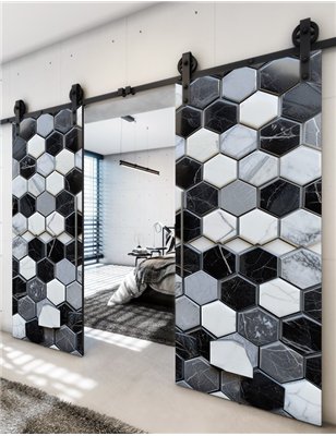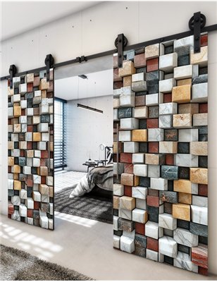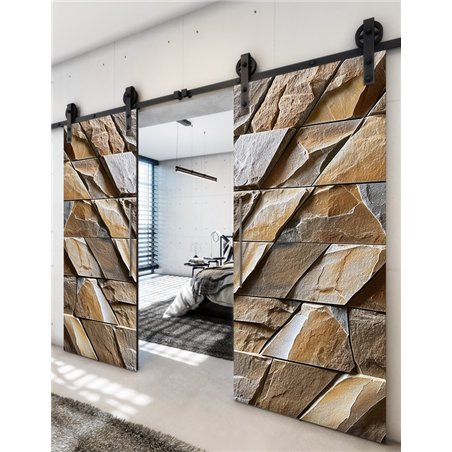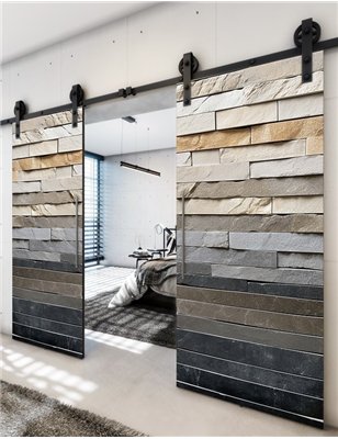 Holzschiebetüren, Barn-Line, Beton und Stein, zweiflügelig, Schwarze Kante für Ihr Zuhause