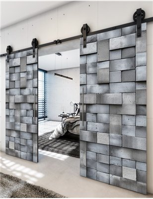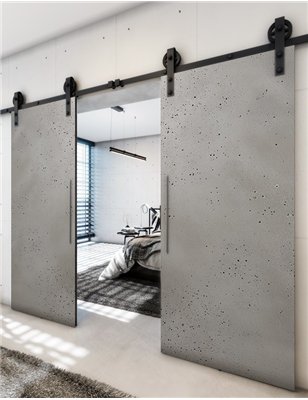 Holzschiebetüren, Barn-Line, Beton und Stein, zweiflügelig, Schwarze Kante für Ihr Zuhause