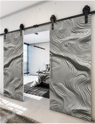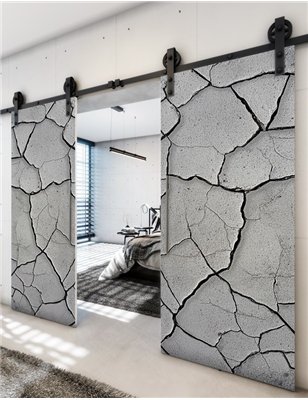 Holzschiebetüren, Barn-Line, Beton und Stein, zweiflügelig, Weisse Kante für Ihr Zuhause