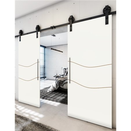 Holzschiebetüren, Barn-Line, Design-Linien, zweiflügelig, Weisse Kante für Ihr Zuhause