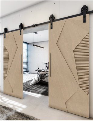 Holzschiebetüren, Barn-Line, Eiche, zweiflügelig, Weisse Kante für Ihr Zuhause