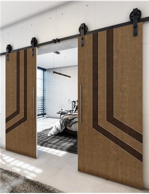 Holzschiebetüren, Barn-Line, Holz-Mix, zweiflügelig, Weisse Kante für Ihr Zuhause