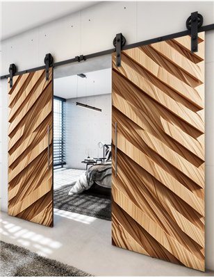 Holzschiebetüren sind eine ausgezeichnete Wahl für moderne Haushalte und bieten eine ideale Lösung für platzsparende, stilvolle Türdesigns. Modelle wie Holzschiebetüren, Barn-Line, Holzkunst, zweiflügelig, Schwarze Kante sorgen für einen eleganten Übergang zwischen verschiedenen Bereichen Ihres Hauses und verbessern den Raumfluss.