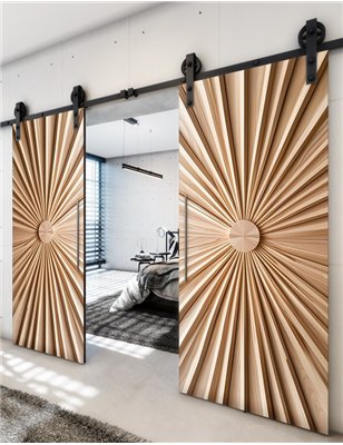 Holzschiebetüren, Barn-Line, Holzkunst, zweiflügelig, Schwarze Kante für Ihr Zuhause