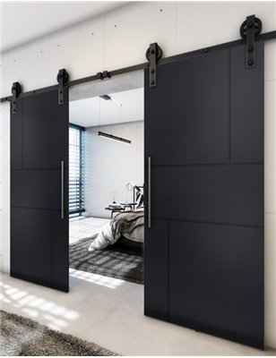 Holzschiebetüren, Barn-Line, Schwarz, zweiflügelig, Schwarze Kante für Ihr Zuhause