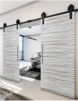 Holzschiebetüren, Barn-Line, Weiss 3D, zweiflügelig, Weisse Kante für Ihr Zuhause