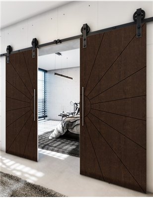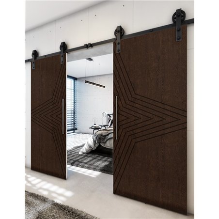 Holzschiebetüren, Barn-Line, Wenge, zweiflügelig, Weisse Kante für Ihr Zuhause