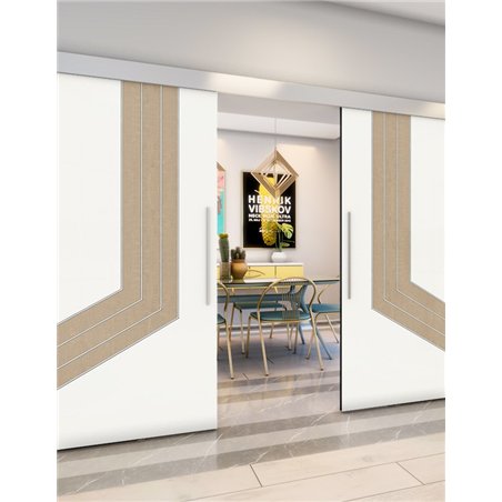 Holzschiebetüren, Eco-Line, Eiche und Weiss, zweiflügelig, Schwarze Kante für Ihr Zuhause