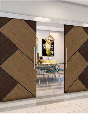 Holzschiebetüren, Eco-Line, Holz-Mix, zweiflügelig, Schwarze Kante für Ihr Zuhause
