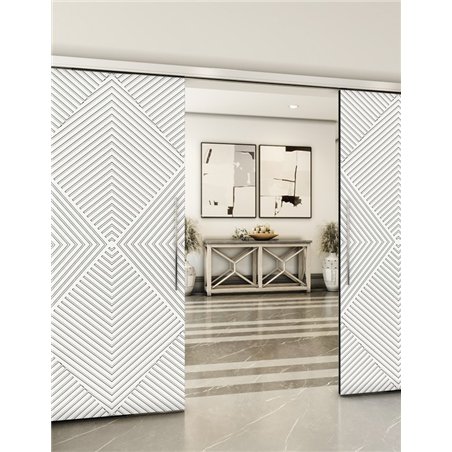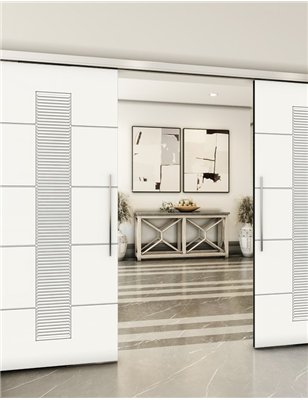 Holzschiebetüren, Slim-Line, Weiss, zweiflügelig, Schwarze Kante für Ihr Zuhause