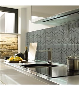 Bringen Sie mit unserer Küchenrückwand aus 6 mm ESG-Glas mit Digitaldruckmotiv eines modernen Fliesenspiegels frischen Wind in Ihre Küche und verwandeln Sie sie in einen einladenden und inspirierenden Raum.
