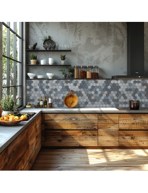 Bringen Sie mit unserer Küchenrückwand aus 6 mm ESG-Glas mit Digitaldruckmotiv eines modernen Fliesenspiegels frischen Wind in Ihre Küche und verwandeln Sie sie in einen einladenden und inspirierenden Raum.