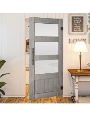 Edle Holztüroptik per Digitaldruck auf Glas gebannt. Ein Fotorealistischer Abzug einer Scheunentür wurde hier auf eine Glasscheibe gedruckt.