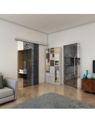 Pendeltür - Fineprint Modell 163 Schwarz auf Grauglas