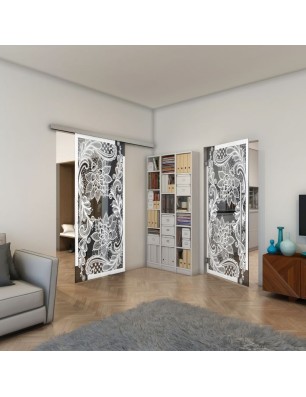 Pendeltür - Fineprint Modell 108 Weiss auf Grauglas