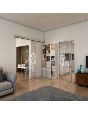 Pendeltür - Fineprint Modell 117 Weiss auf Klarglas