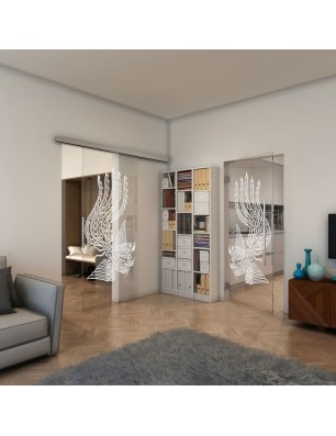 Pendeltür - Fineprint Modell 157 Weiss auf Klarglas
