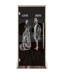 Pendeltür Ladies and Gents Gelasert Auf Grauglas