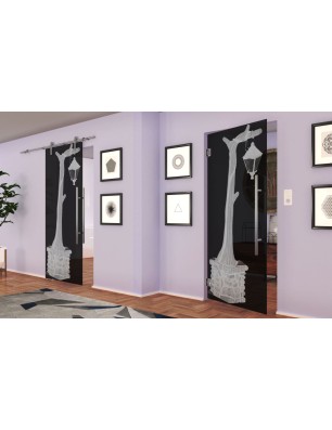 Pendeltür Baum 2 Gelasert Auf Grauglas