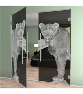 Unsere sogenannten Lasergravur-Pendeltüren sind in Wirklichkeit nicht graviert, sondern mit einem hochpräzisen UV-Digitaldruck in Lasergravur-Optik versehen. So bleibt die Glasoberfläche unversehrt, was sie besonders pflegeleicht und langlebig macht – bei gleichzeitig authentischem Gravur-Look.