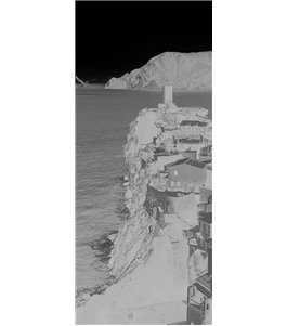 Pendeltür Mediteranes Dorf Gelasert Auf Klarglas