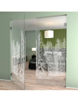 Pendeltür Winterwald Gelasert Auf Klarglas