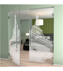 Pendeltür Eifelturm Gelasert Auf Klarglas