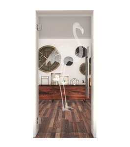 Pendeltür Flamingo Gelasert Auf Klarglas
