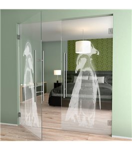 Pendeltür Pinguine Gelasert Auf Klarglas