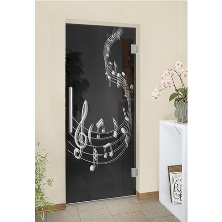 Pendeltüren-Lasergravur auf Grauglas Musik