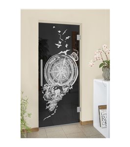 Pendeltüren-Lasergravur auf Grauglas Vintage