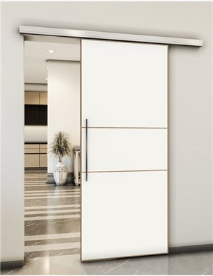 Das feine minimalistische designs mit Dunklen Linien uf weissem Hintergrund verleiht dieser Tür ihren besonderen Charakter.